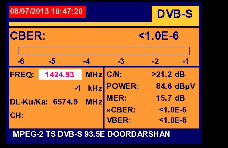 3 725 @ 1 424 MHz @ SPAN 100 MHz : 93.5°E Doordarshan India