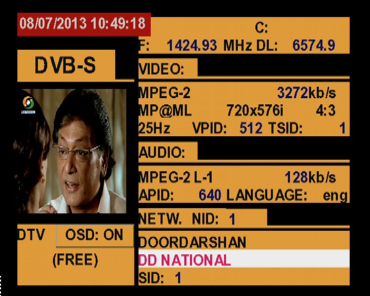 3 725 @ 1 424 MHz @ SPAN 500 MHz : 93.5°E Doordarshan India