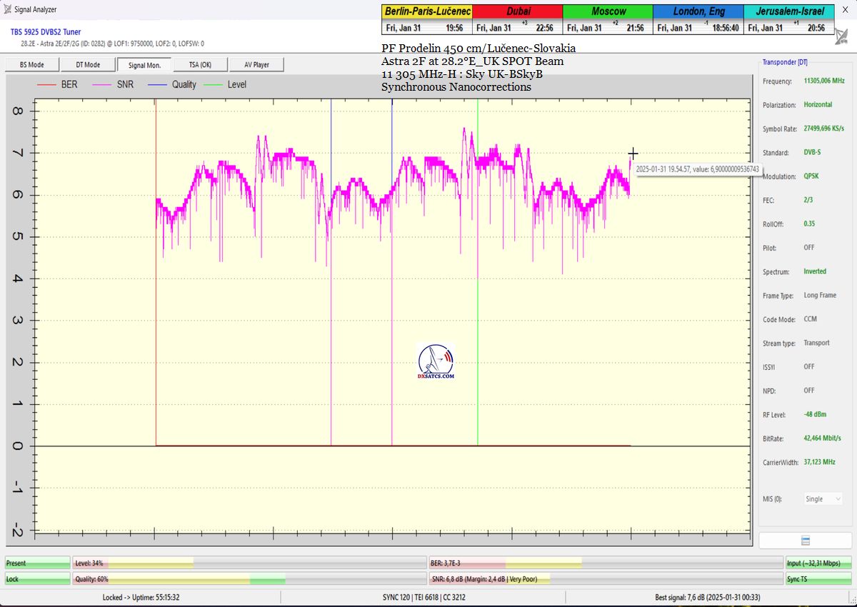 ►EN_Successful application of my technological invention "Synchronous Nano-Corrections" on the 11,305-H carrier of Sky UK-BSkyB and the reception stability verified through signal monitoring over a total duration of 102 hours in the south of central Slovakia.