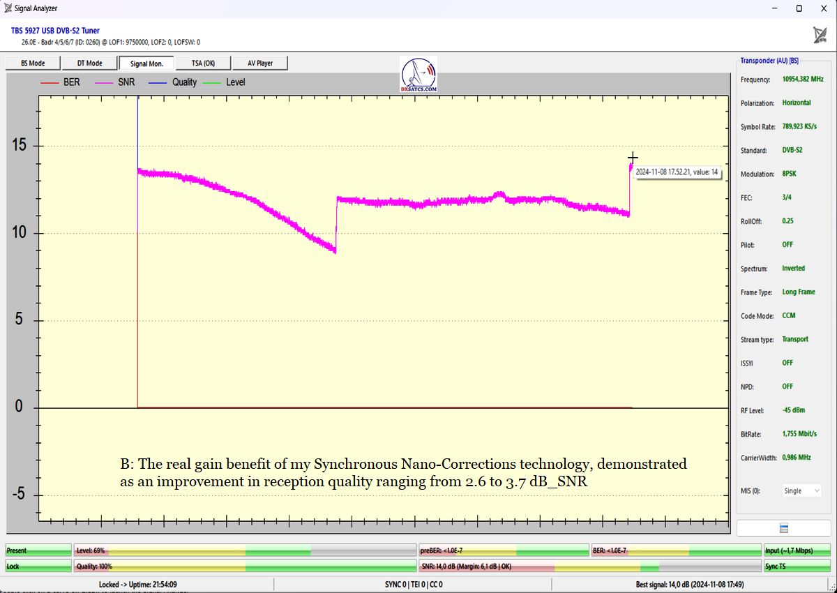 For understandable reasons, I will refrain from elaborating on or summarizing its other benefits for the field of satellite reception of geostationary