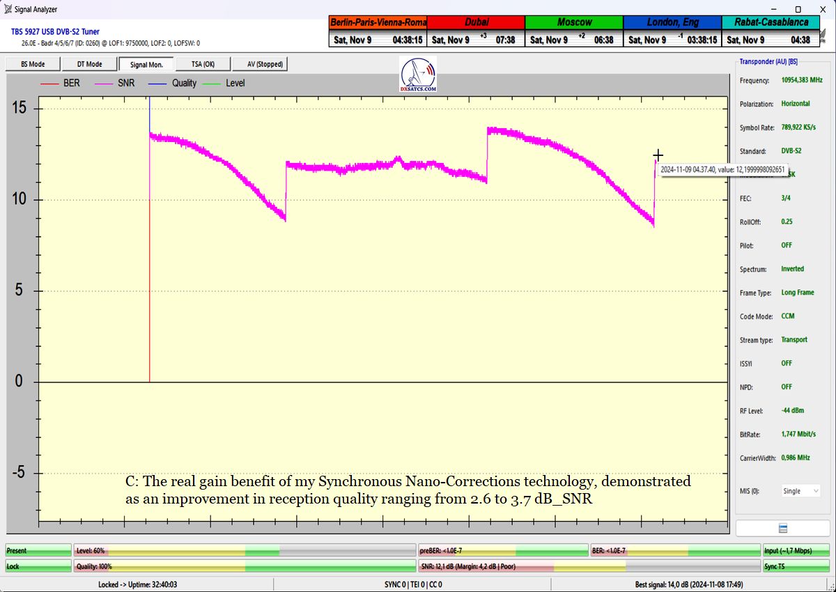 ►The quality increases abruptly and within seconds by up to 3.7 dB, rising from an SNR of 8.5 to 12.2 dB after I entered updated data into the system,