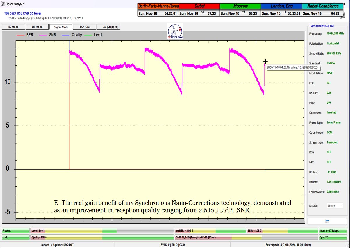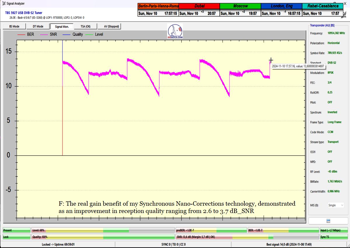 DE_10 955 MHz:Nur mit Hilfe meiner originellen technologischen Erfindung mit dem Namen "Synchrone Nanokorrekturen" konnte ich in der Monitoring-Einheit t=74