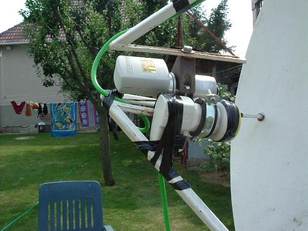 S tým čo ste uviedli o citlivosti DM 7000 sa dá jedine súhlasiť. V čase keď som prijímač kupoval, tak neexistoval iný kompromis medzi softvérovou variabilitou a citlivosťou daného druhu zariadenia. Keďže patrím skôr medzi praktických užívateľov a nie experimentátorov v oblasti satelitného príjmu, tak v najbližších 100 rokoch neplánujem kupovať nové zariadenie. Výsledky ktoré dosahujem s danou konfiguráciou sú relatívne uspokojiteľné. Sila príjmu na transpodéroch 12579 H a 12640 H zo 75E pri dobrom počasí je tesne nad hranicou stability. Pamätám sa na World Made Channel s úrovňou do 65 percent a World Fashion Channel tiež do 65 percent. Pri daných dátových tokoch k rozpadu obrazu dochádzalo pri poklese sily signálu pod 59 percent. Príjem ale nie je v fokuse. Je realizovaný ofsetovým no-name konvertorom 0,2dB ktorý je na obrázku zľava