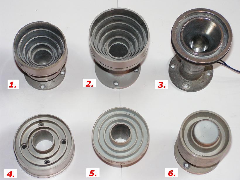 obr č.1 : 5, Ožarovač so závitom na vlnovode ,ku ktorému sa vyrábal medzikus na pripevnenie do univerzálnych prírubových LNB od japonského výrobcu vysoko profesionálnych VF produktov SPC,ktoré sa aj v súčasnosti bežne predávajú hlavne na Americkom trhu.Použitie tohto typu ožarovača je vymedzené v stredových anténach s pomerom f/D okolo 0,4.